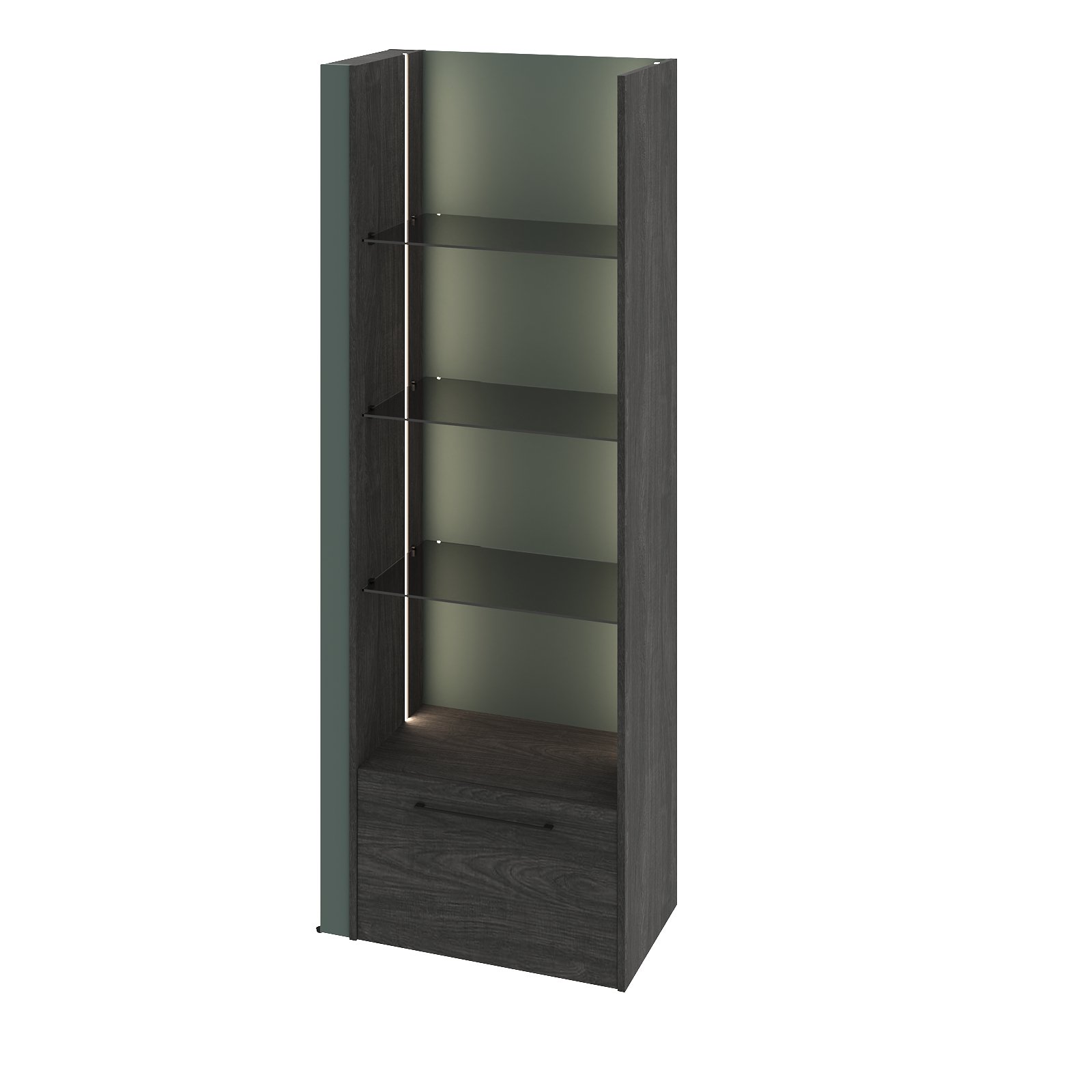 Стеллаж с подсветкой, стеклянными полками и ящиком G-71 из коллекции Гринвуд.