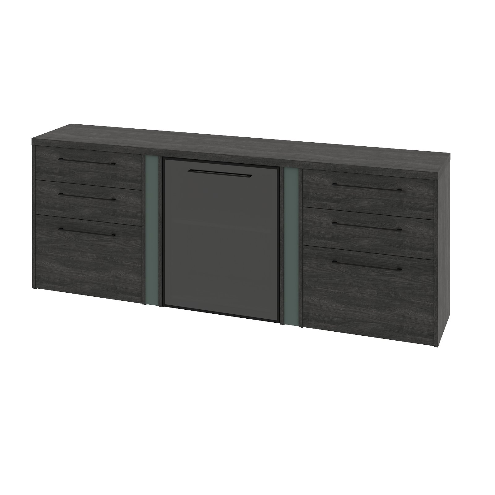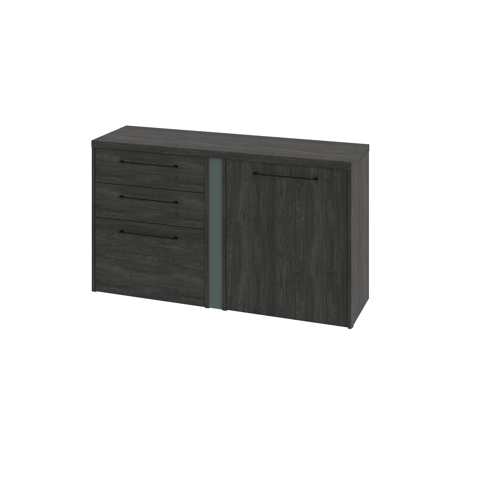 Проставки выполнены из ЛДСП 38 мм, облицованы противоударной кромкой ABS 2 мм в цвете Зеленый камень. Остальные детали выполнены из ЛДСП Дуб Шерман антрацит 18 мм, видимые торцы облицованы противоударной кромкой ABS 0,8 мм.
