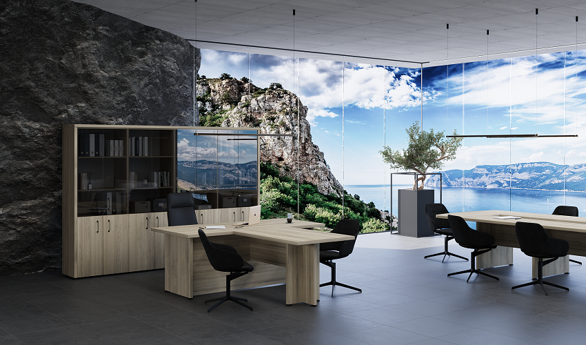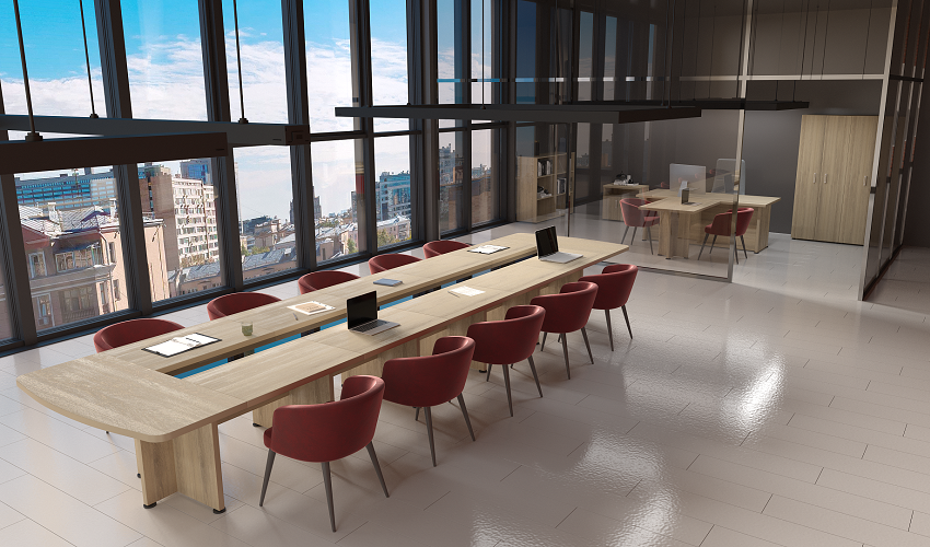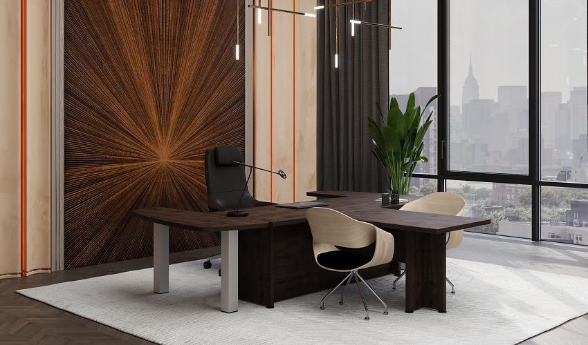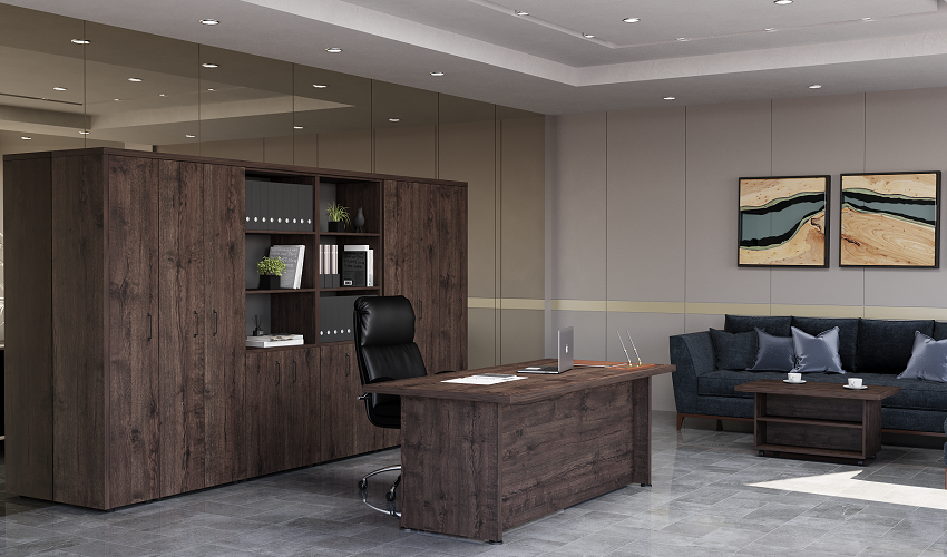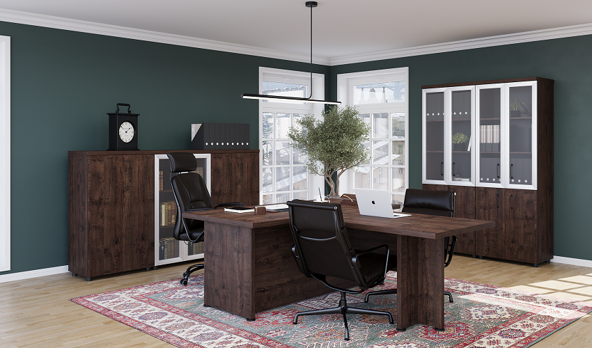 Мебель кабинета руководителя Приоритет отличается лаконичным дизайном. При этом все элементы максимально функциональны и удобны в использовании. Простота мебели отражает солидность и серьезность помещения, внушает доверия и настраивает на рабочее настроение.