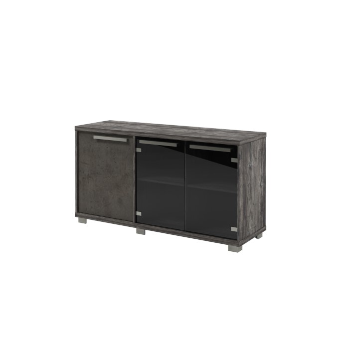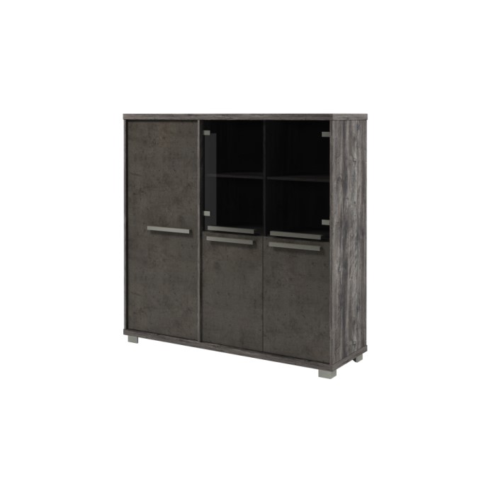 Двери шкафов выполнены в новом цвете «Бетон Чикаго», выгодно оттеняющим натуральные древесные текстуры цвета «Дуб Галифакс» и цвета «Сосна Пасадена».