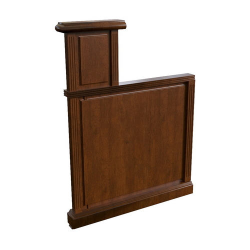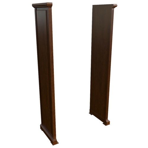 Шкафы – шпонированные МДФ, ДСП, толщина каркасов - 19 мм, декоративные топы шкафов - 60 мм, толщина полок - 26 мм, задняя стенка МДФ шпон - 6 мм, петли с доводчиком, стекло прозрачное закаленное с фацетом.