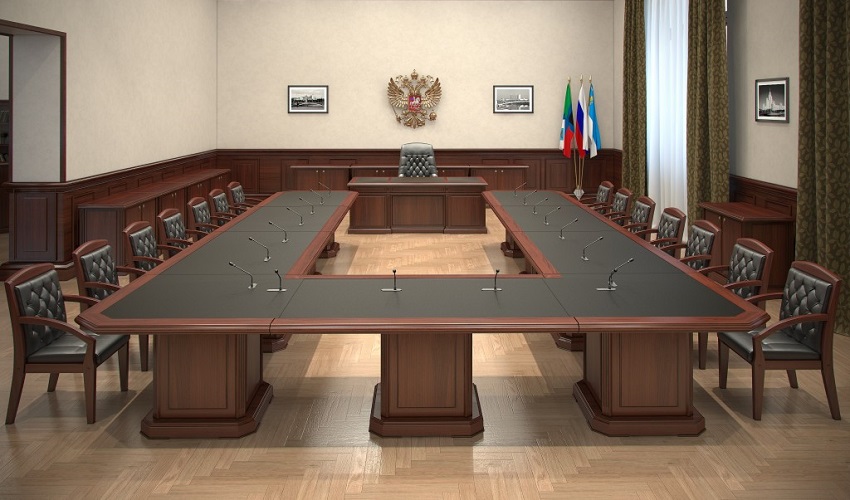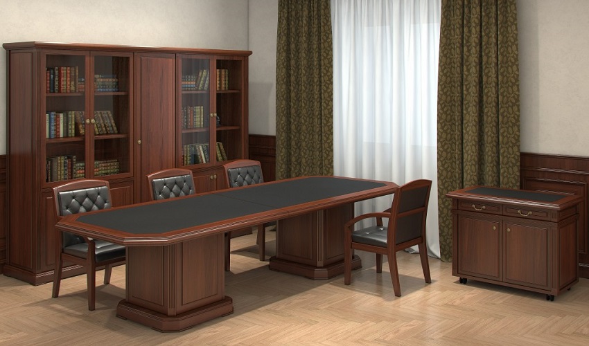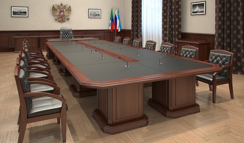 Конференц столы ,наборные элементы конференц столов - шпонированная МДФ, ДСП, рециклированная кожа, толщина столешниц - 60 мм.
