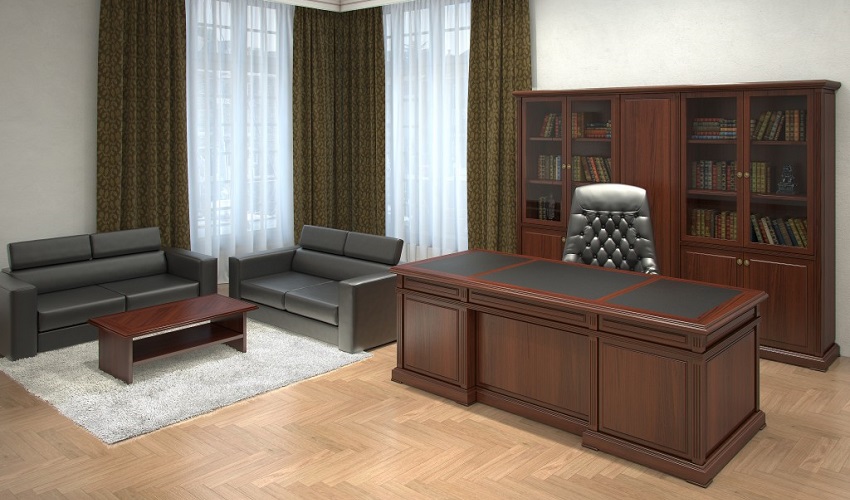 Коллекция Washington- это классический кабинет премиум-класса, выполненный из шпонированных МДФ, ДСП и рециклированной кожи.