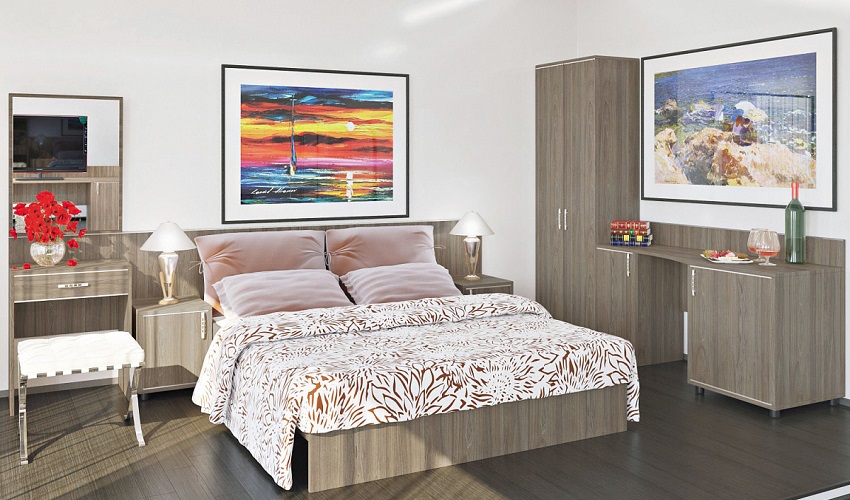 Коллекция мебели для отелей Light обеспечит комфорт вашим гостям. Элегантный дизайн коллекции прекрасно вписывается в любой интерьер. А надёжность удобных кроватей, практичных шкафов и вместительных тумбочек сделает её правильным выбором для гостиниц, санаториев и домов отдыха.