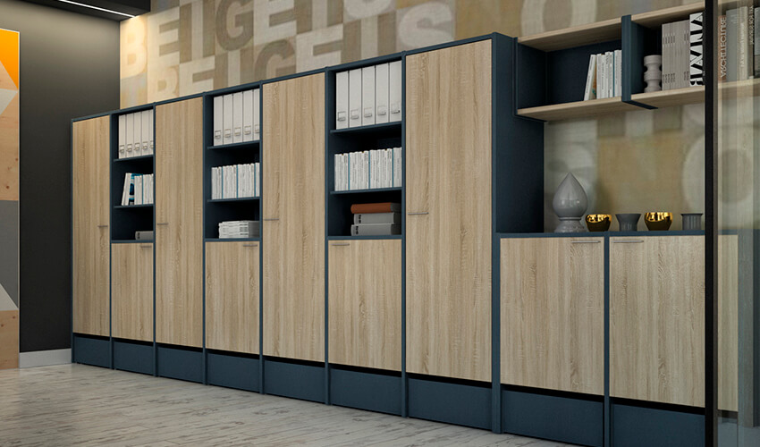 - в шкафах задняя стенка из ЛДСП 8 мм, что дает возможность использовать их в качестве офисных перегородок;
