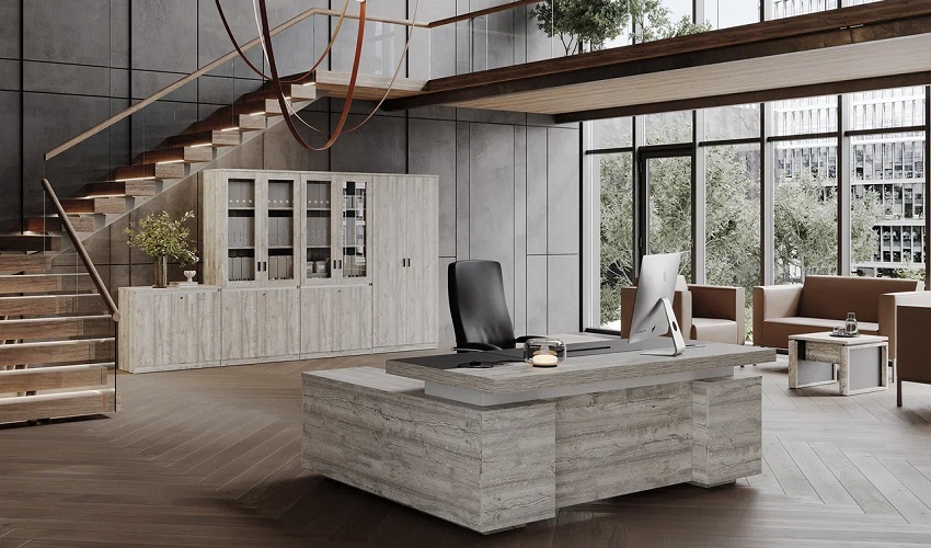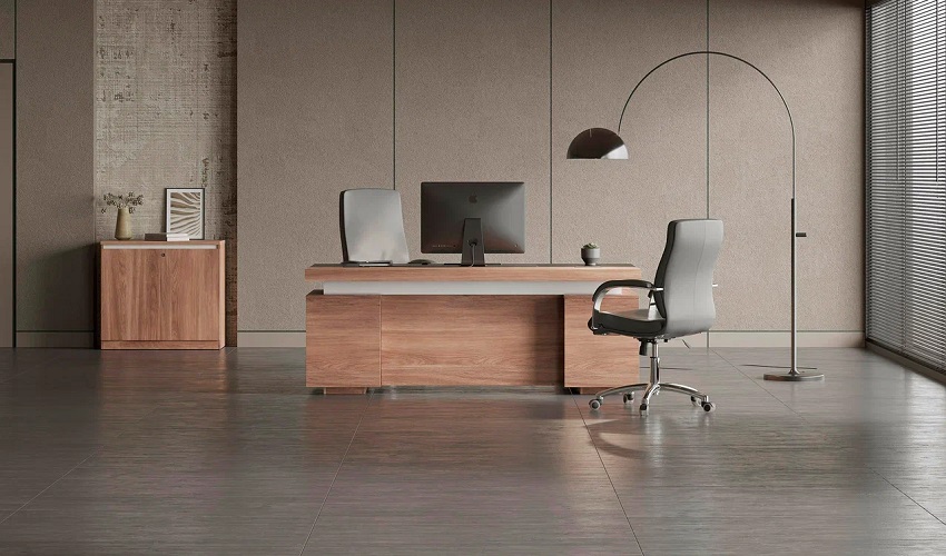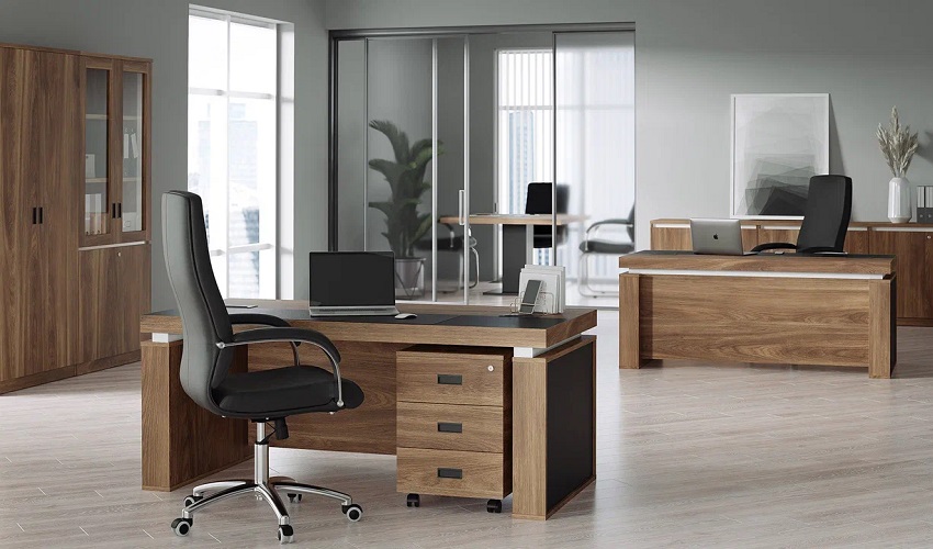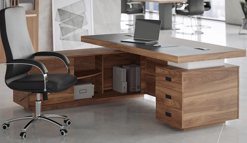 Столешницы письменных столов толщиной 74 мм, со встроенными кабель-каналами, кромка шпон.