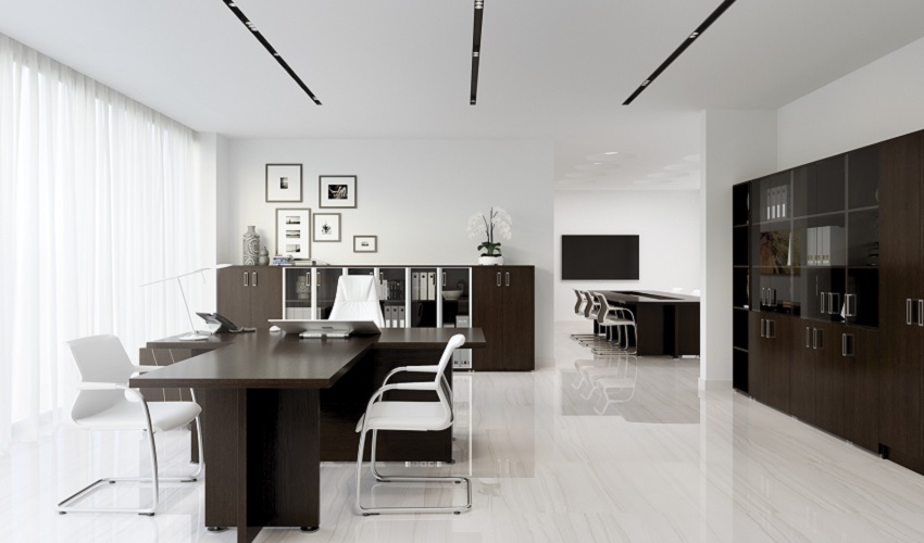 Мебель кабинета руководителя Приоритет отличается лаконичным дизайном. При этом все элементы максимально функциональны и удобны в использовании. Простота мебели отражает солидность и серьезность помещения, внушает доверия и настраивает на рабочее настроение.