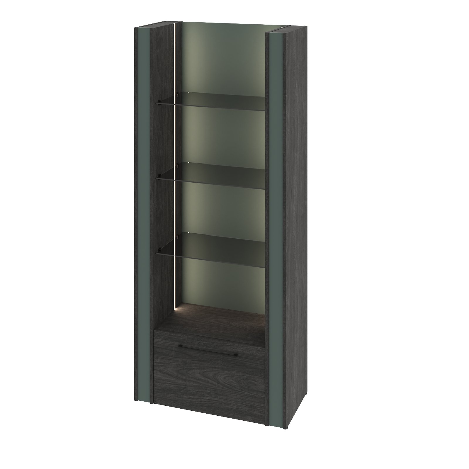 Дополнительная секция стеллажа с подсветкой, стеклянными полками и ящиком G-711