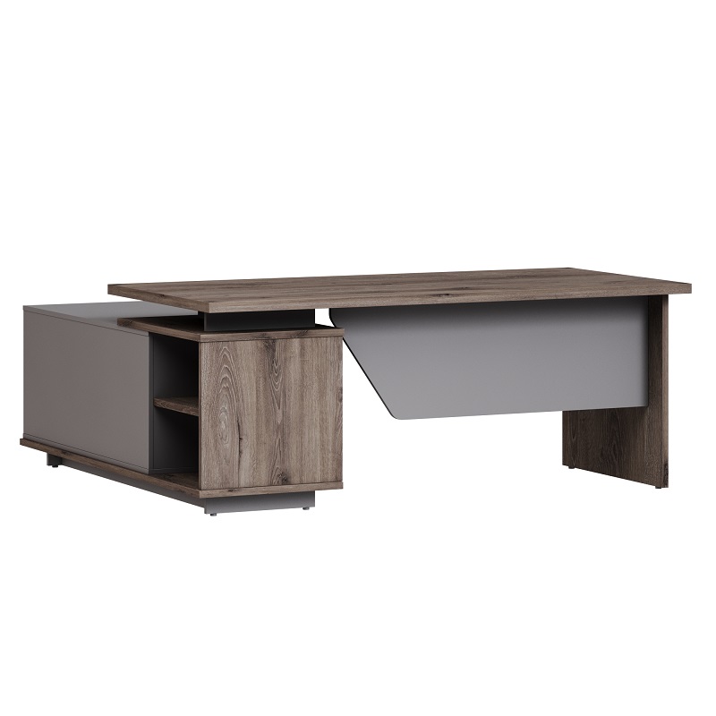 Стол руководителя с опорной тумбой FB-117L.DD левый фурнитура черная