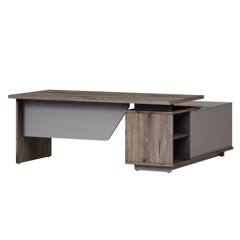 Стол руководителя с опорной тумбой FB-117R.GG правый фурнитура черная