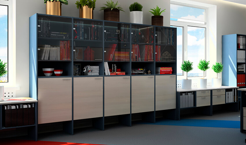 - в шкафах задняя стенка из ЛДСП 8 мм, что дает возможность использовать их в качестве офисных перегородок;