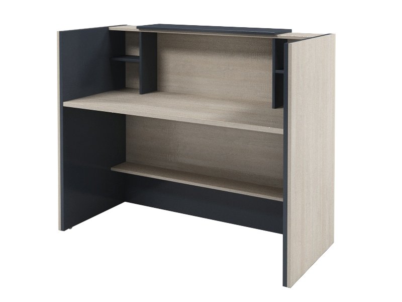 Стойка ресепшен имеет простую и функциональую форму, что позволяет составить П-образные, угловые и прямые (в одну линию) композиции любых размеров.